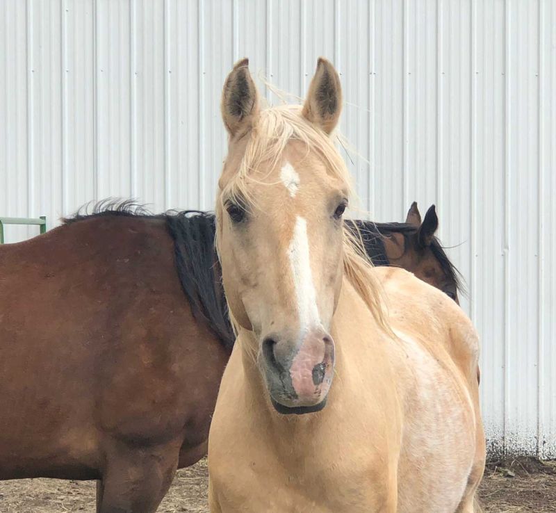 Cliff, a shy gelding from Mountain Valley Horse Rescue, was adopted in 2023! He found his new home and a new herd where he is now part of a wonderful family. Cliff’s lonely past is now behind him with love and companionship from his new friends and family.