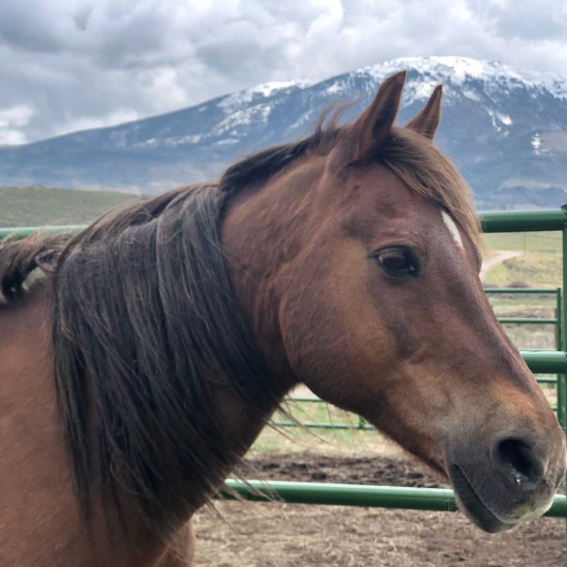 Abe, a sweet older gentleman from Mountain Valley Horse Rescue, was adopted by a Summit County couple in 2023 and is now boarding on Ptarmigan Mountain. who will make an amazing pasture pet/companion. He is no longer rideable, and is curious, friendly and has good manners.